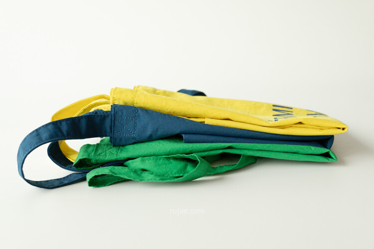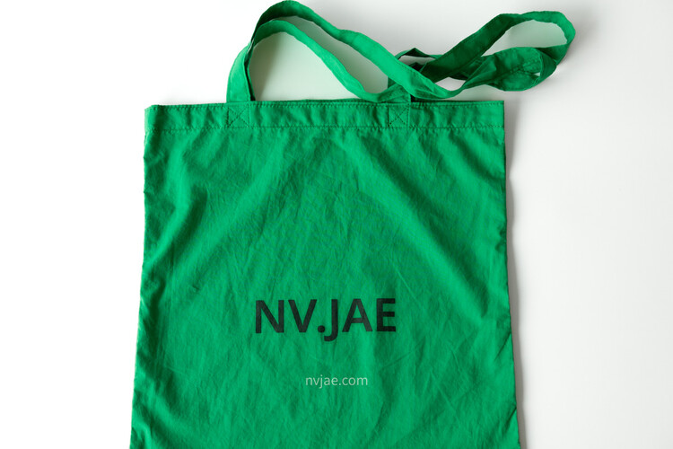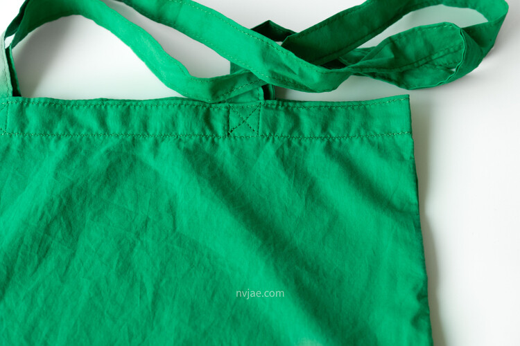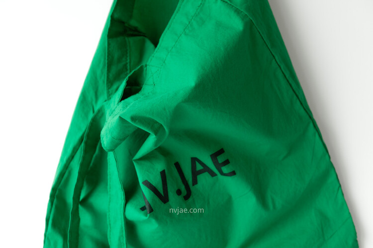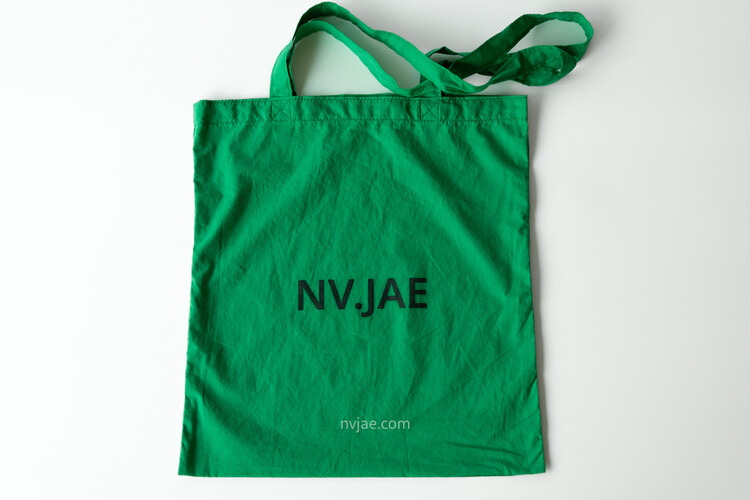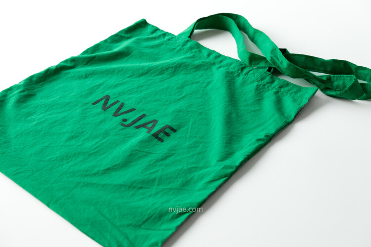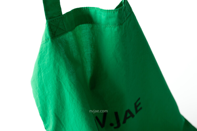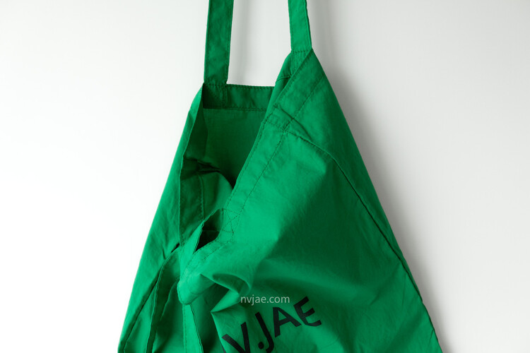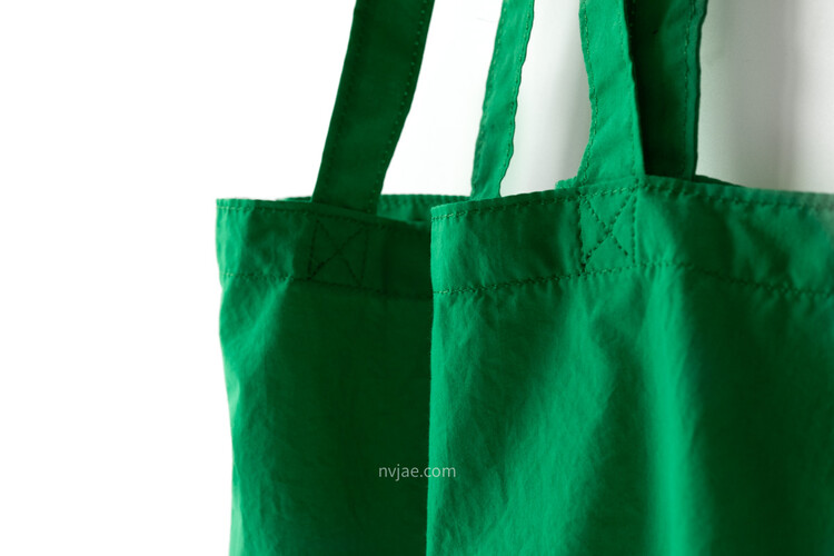 포인트가 되는 초록 색상이며, 다른 에코백보다 더욱 얇은 천으로 제작하였습니다.